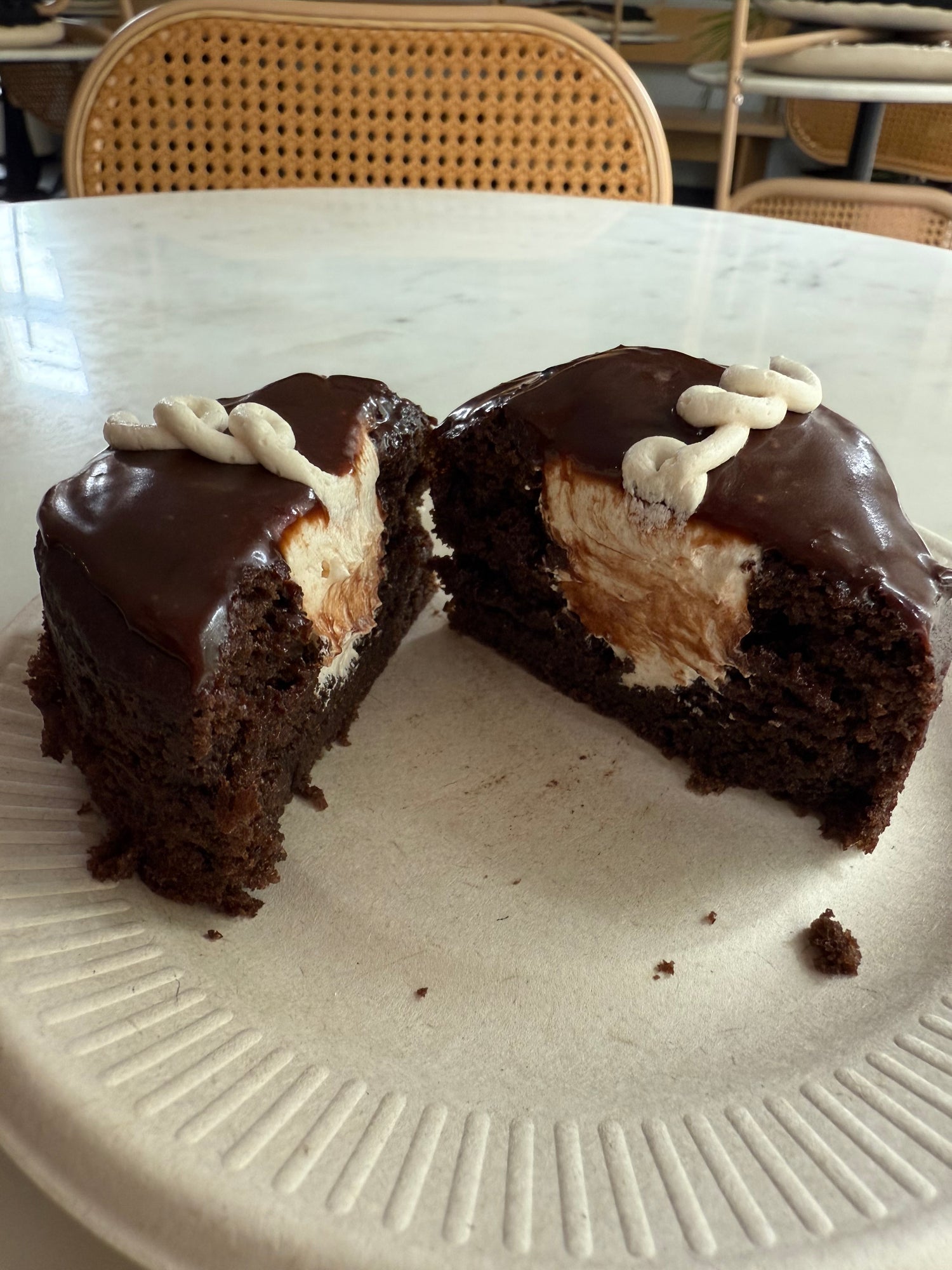 Fauxstess Filled Cupcakes! Fluffy chocolate cake with vanilla buttercream filling and chocolate fudge icing.